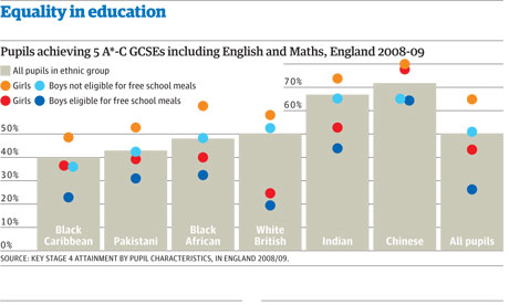 quote: All The Graph shows is that Chinese and Indian pupils are better at achieving the best results.I am at a loss to know why free school meals were included in the same graph maybe the authors of the graph wanted to show that eating curry or bean sprouts and noodles made you get better exam results.!